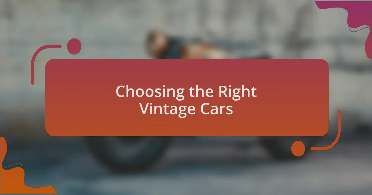 Choosing the right vintage car can truly define your experience in the club. I remember my first meet when I arrived in a 1965 Ford Mustang, and the pride I felt as fellow enthusiasts admired it was unparalleled. It’s not just about the car’s history; it’s the stories and emotions they evoke, making each model a unique piece of art waiting to be appreciated.
